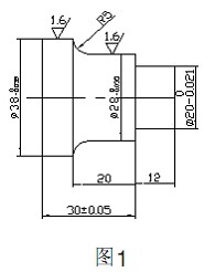 如圖,實際測得零件的直徑(預留O.SOmm的余量)分別是20.52mm,28.54mm,3856mm(分別超差0.02mm,0.04mm,0.06mm)、如果按照補償加工的話,精加工向卜補償0.04mm,則cp28的外圓正好,cp38的外圓還大0.02mm)如果滿足后端,則前面的所有的都會超差、