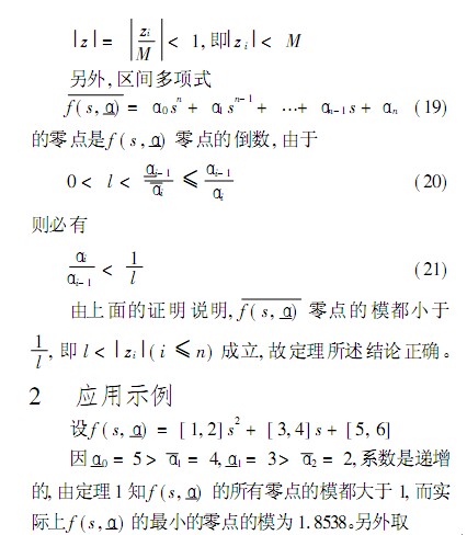對于正系數(shù)區(qū)間多項(xiàng)式零點(diǎn)的一般估計(jì), 我們有如下結(jié)論: