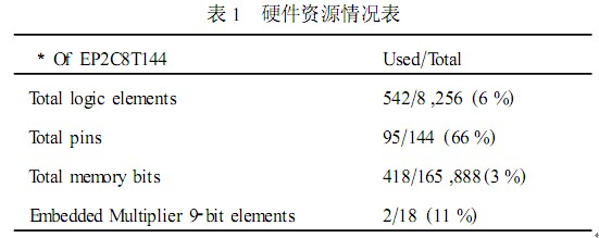 以上模塊中 ,NCO ,時(shí)鐘生成模塊和數(shù)據(jù)精度控制模塊由VHDL 硬件描述語(yǔ)言編程實(shí)現(xiàn) ,其他模塊采用QUARTUS提供的各功能子模塊搭建完成。經(jīng)QUARTUS軟件編譯后 ,使用計(jì)算機(jī)仿真可得各數(shù)據(jù)的矢量波形圖和 RTL 級(jí)結(jié)構(gòu)圖。軟件綜合分析 ,會(huì)自動(dòng)總結(jié)出的硬件資源使用情況。從表 1 可見(jiàn) ,選用 EP2C8T144芯片是比較合適的。