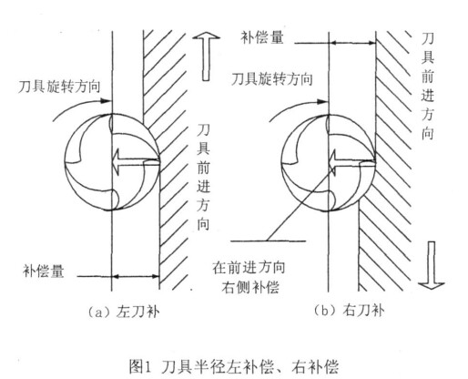 為了加工出符合要求的零件輪廓 , 其加工程序要么偏離零件輪廓一個刀具半徑值來編程 , 要么按零件輪廓編程 , 而讓數控系統自動偏離零件輪廓一個刀具半徑值 , 就是刀具半徑補償. 刀具所偏移的這段距離稱為偏置. 數控系統使用刀具半徑補償功能 , 可以自動計算出偏置后的刀具軌跡 , 這樣既能簡化編程程序 , 又能夠很容易地調整加工輪廓的尺寸.