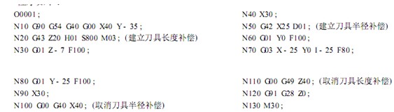 由上例可知 , 加入刀具半徑補償和長度補償功能后 , 數控編程均可按圖形輪廓的尺寸進行.