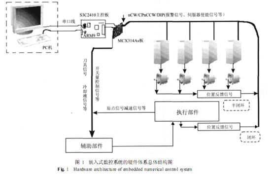 體系硬件渠道由 ARM9的 S3C2410主控板和 MCX314As運動控制板構成 ,這樣分隔規劃有利于使整個數控體系的硬件體系結構及各個模塊的接口模塊化和標準化。為將來模塊或許體系的硬件維護和升級帶來極大的方便。