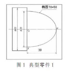 如圖 1 所示零件 該零件編程時以橢圓右端中心 O 點作為編程原點 由于加工的橢圓極角 為 90 所以可以采用將橢圓極角設為自變量 當橢圓極角從 O 點 0 逐漸增加到 A 點 90 時 根據橢圓參數方程求得橢圓 OA 段上每個點所對應的短軸值和長軸值 然后再算出橢圓 OA 段上每個點在工件坐標系中所對應的 X 值和 Z 值 從而加工出橢圓 編程中采用條件轉移 IF 語句 該橢圓的參數方程 X=39*COS ,Y=25*SIN 其中 X 表示橢圓長軸值 Y 表示橢圓短軸值 表示橢圓極角