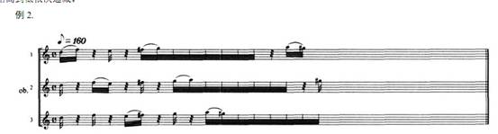 上例中, 第三雙簧管仍然運用第二雙簧管的節(jié)奏, 但順序卻已經(jīng)改變, 形成循環(huán)方式的使用。