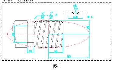 以上程序陰影部分橢圓曲線的程序也可以用橢圓的標準方程編寫,值得注意的是橢圓的標準方程和參數方程編程時,由于逼近橢圓曲線的方式不同的,為了減少螺紋的誤差,橢圓曲線和螺紋的編程方法要統一。橢圓曲線加工精度與步距有關,步距越小,橢圓的精度越局。