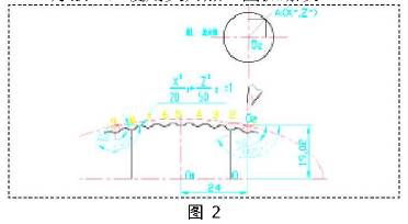該螺紋如果使用中5的圓弧刀,圓弧刀要磨出一定的螺旋升角,防止刀具的后刀面與工件發生干涉。螺紋到達底部時切削刃與工件接觸過多,容易引起振動,切削高強度材料時容易崩刀。若使用93“尖刀,排屑比較容易,加工牙型表面質量比較好,但螺紋曲面要平緩,牙型深度不宜過深.防止刀具與工件發生干涉。