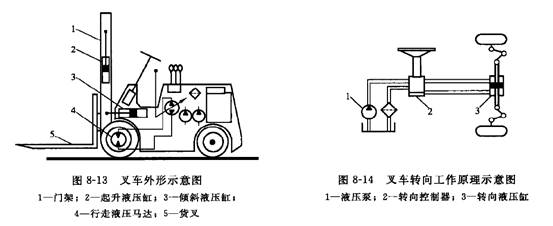 叉車(chē)工作和轉(zhuǎn)向裝置主要有以下幾種工作情況。
