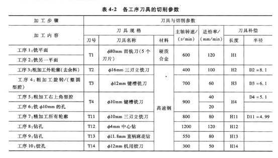 10)鉸孔加工。保證孔的直徑和深度,選用Φ12mm機(jī)用鉸刀。各工序及刀具的切削參數(shù)見表4_20