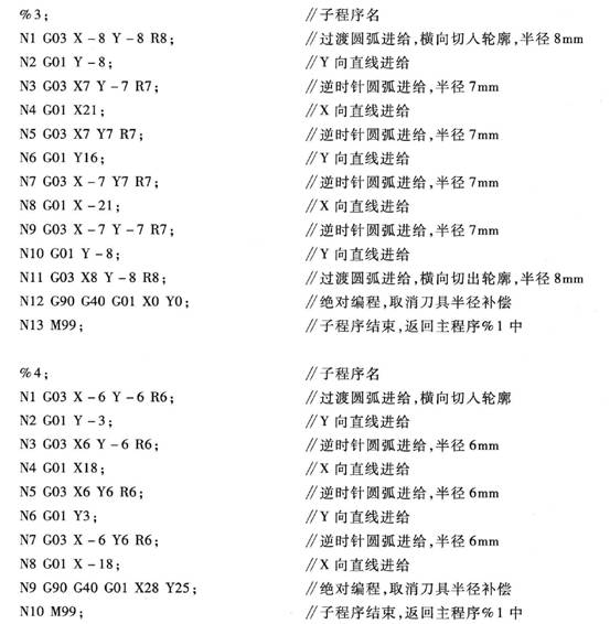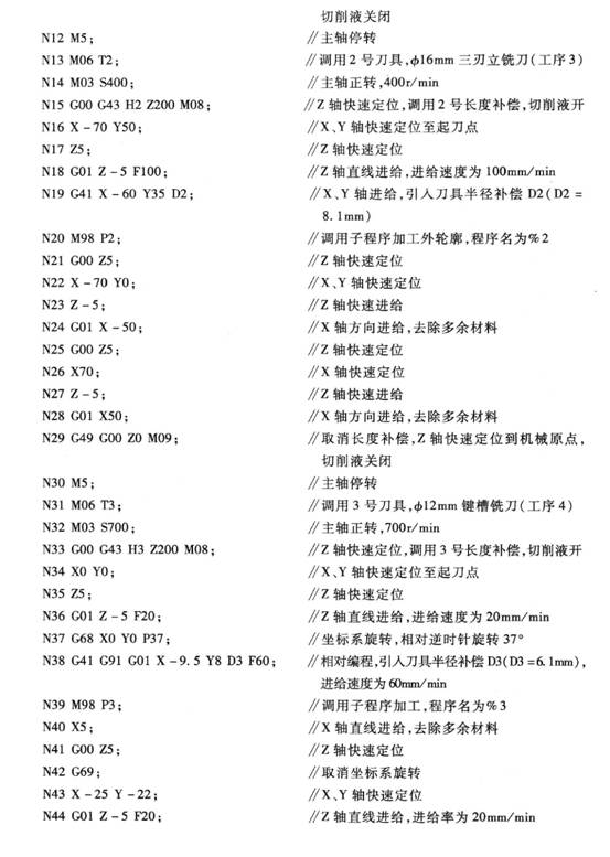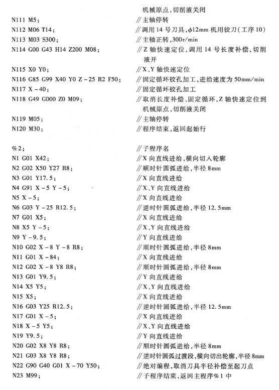 用木錘或銅棒敲擊工件,使平行墊塊不能移動(dòng)后夾緊工件。利用尋邊器找正工件X, Y軸零點(diǎn),使之位于工件對(duì)稱中心位置。設(shè)置Z軸零點(diǎn)與機(jī)械原點(diǎn)重合。刀具長(zhǎng)度補(bǔ)償利用Z軸定位器設(shè)定(有時(shí)也可不使用刀具長(zhǎng)度補(bǔ)償功能,而根據(jù)不同刀具設(shè)定多個(gè)工件坐標(biāo)系零點(diǎn)進(jìn)行編程加工)。工件上表面為執(zhí)行刀具長(zhǎng)度補(bǔ)償后的Z零點(diǎn)表面。