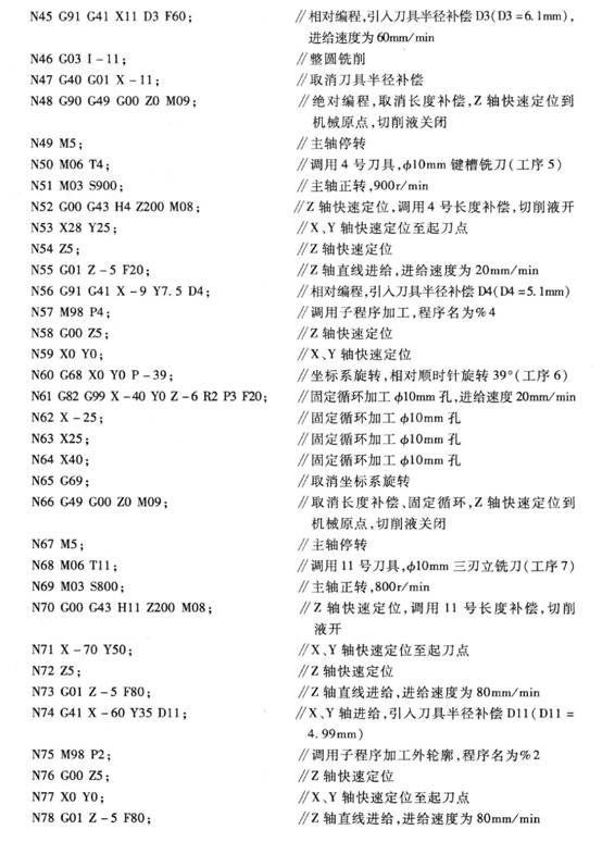 工序2一工序10由以下程序完成加工,正式加工前必須進(jìn)行程序的檢查和校驗(yàn),并進(jìn)行首件試切,確認(rèn)無(wú)誤后自動(dòng)加工。