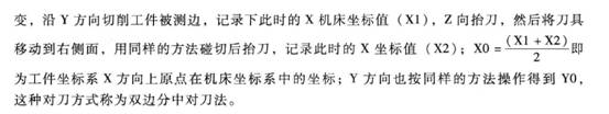 3)保持Z坐標(biāo)不變,記錄下此時(shí)機(jī)床坐標(biāo)系下的Z值,該值就是被測(cè)邊的Z偏置值。