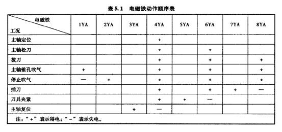 該系統(tǒng)要實(shí)現(xiàn)的工作.循環(huán)有主軸定位、主軸松刀、機(jī)械手拔刀、主軸錐孔吹氣、機(jī)械手插刀等動(dòng)作,其工作過程如下。