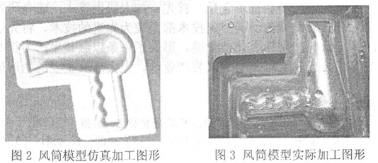 經(jīng)過仿真軟件的加工可以簡單地驗(yàn)證加工圖形的輪廓、 形狀, 但對于精度及表面質(zhì)量等要求還不能保證, 所以必須經(jīng)實(shí)際機(jī)床加工才能進(jìn)一步證實(shí)代碼的正確性.利用微機(jī) DNC 功能將專用后處理器生成的數(shù)控程序輸入到數(shù)控機(jī)床 KXK7250 , 實(shí)際加工出的零件滿足要求.圖 3為風(fēng)筒模型實(shí)際加工圖形.