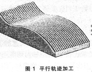 ( 1) 平行軌跡加工( Raster) 。 該類刀具軌跡又稱為掃描行切“Zigzag”類軌跡( 圖 1) 。該類加工策略優(yōu)點為切削效率高, 計算量小。缺點是對于平行刀具軌跡的陡斜面, 將得到 Z向間隔很大的刀具軌跡, 加工質(zhì)量不高, 對此可以通過調(diào)整刀具軌跡擺放角度或采用補充垂直路徑的方法加以修正。